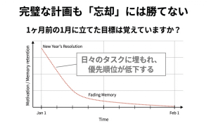 多くの人が、年始に目標を掲げますが、気づけば日常の忙しさや目前のタスクに埋没し、一ヶ月も経てばその決意は徐々に薄れてしまいます。